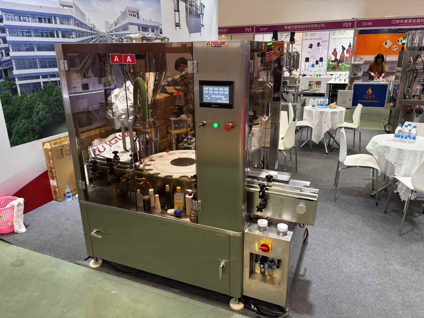 此次展會,中環(huán)智能攜帶多款拳頭產品重磅出擊,重點展示了公司在香水灌裝機、灌裝封尾機、灌裝旋蓋機等領域的創(chuàng)新成果與行業(yè)領先解決方案: